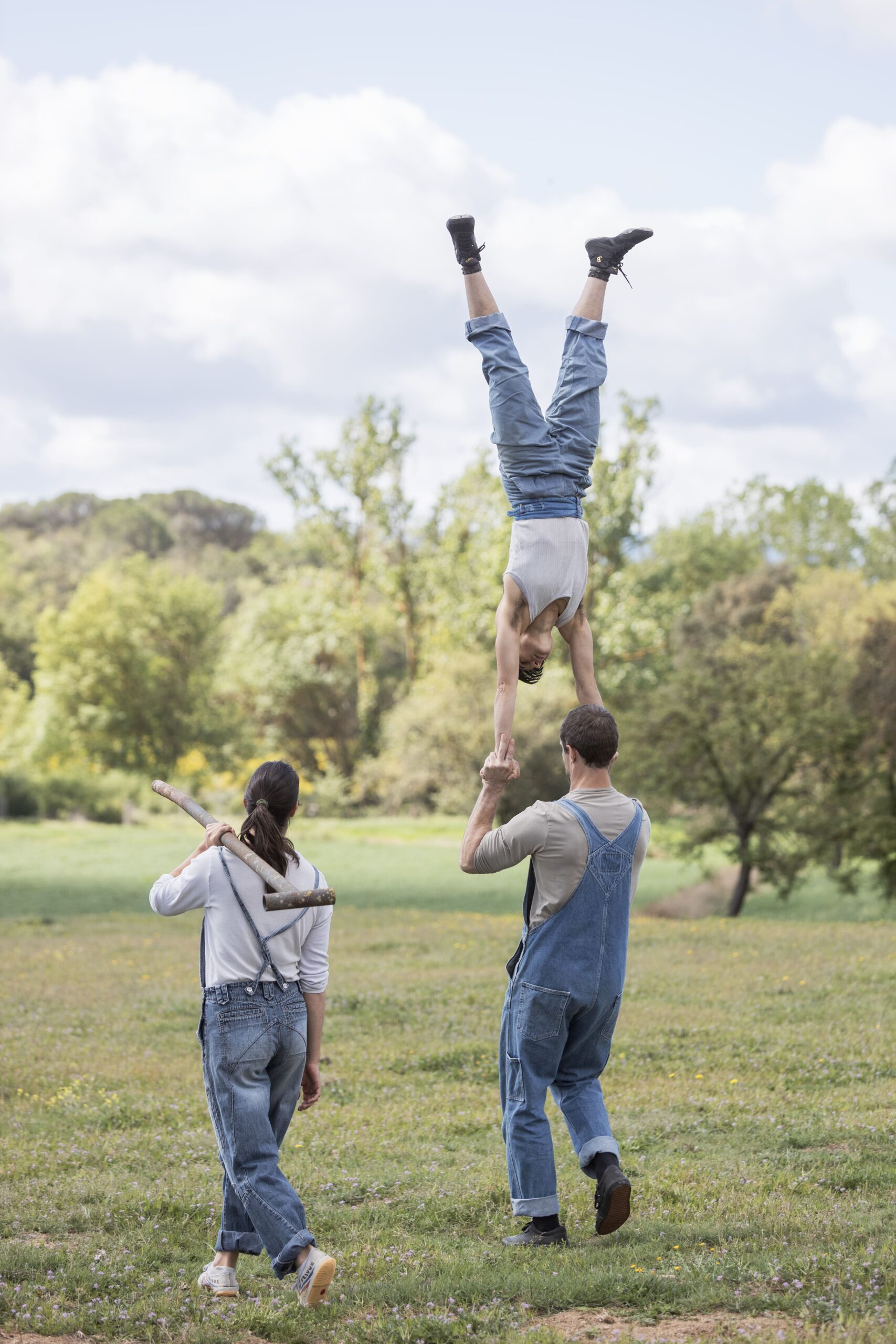 Raimon Mató, Júlia Clarà and Àfrica Llorens have collaborated on various creative projects in the circus field over the last eight years of their professional careers, such as ENVÀ, Estat d’Emergència de la Producció Nacional de Circ, and the creation of two hand-to-hand acts: NoCal (Júlia and Àfrica) and A VOLTES (Raimon and Àfrica). Thanks to these collaborations, a strong friendship developed between them, and they began to share acrobatic balancing training sessions and discover a common artistic vision. Furthermore, all three live in the Girona region, which facilitates their proximity. They have decided to listen to the impulse and the need to create a show together as a company. Fèmut.